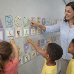 Além de decorar a sala, o material se transforma em um recurso de aprendizagem visual que estimula a curiosidade e o contato diário com o alfabeto.