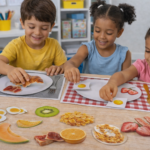 Com essa atividade pedagógica de 4 pranchas com pratos e diversos alimentos para café da manhã, as crianças exploram os alimentos, fazem escolhas e aprendem sobre hábitos saudáveis enquanto brincam ✨
