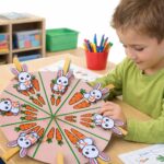 Nessa atividade de associação, trabalhamos o raciocínio lógico-matemático de forma lúdica. O objetivo é que a criança conte as cenouras em cada fatia e encontre o coelhinho com o numeral correspondente.