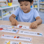 Nossas Frases Enigmáticas são o recurso perfeito para estimular a leitura de um jeito leve e super divertido! O desafio é simples: leia a frase e decifre a imagem para completar o sentido.