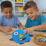 Enquanto brincam, os alunos observam detalhes, fazem escolhas e constroem o monstrinho de forma divertida.
